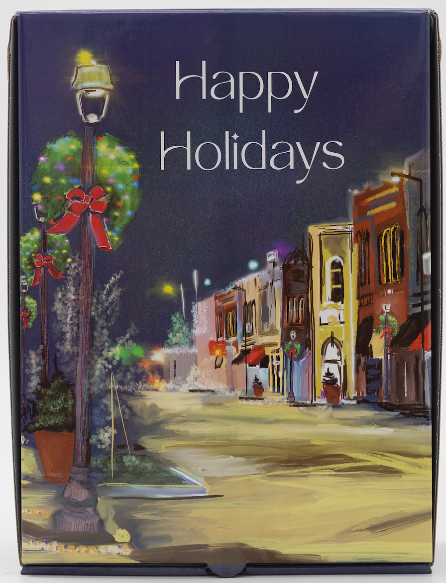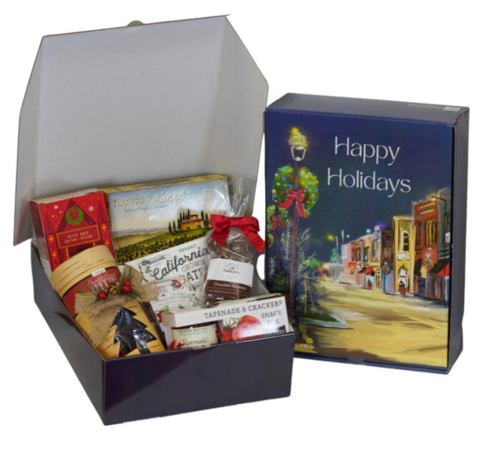 Life is grand and so is our artisan Small Town gift box. Our grand size delivers an assortment of novelty treats including those that satisfy your savory and sweet sides. Delight in chocolate covered pretzels, cranberry jellied fruit, artisan crisps, medjool dates, brownie crisps, authentic Le Caramel candies and so much more. The grand size is ideal for making a lasting impression and showing genuine appreciation for customers, employees and colleagues. Choose your ribbon color or opt to imprint your company logo on any color ribbon by choosing the custom option. Handmade to stock up and share, we specialize in custom, bundle orders.