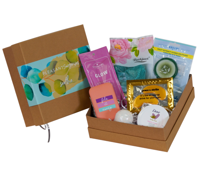 Our soothing spa gift set does exactly that! Pleasant Surprises very own vibrant mini spa collection is both refreshing and relaxing. We’ve paired luxe body lotion with a mani pedi set, scrubbing sponge, mineral bath soak, scented bath bomb and more. Send as the perfect pick-me-up for a hard working team, tranquil birthday celebration, or just because.