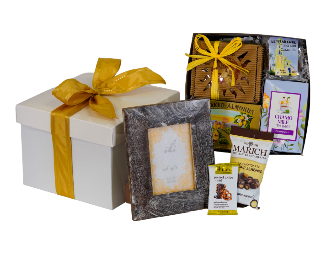 Send someone in need of a hug a heartfelt, handcrafted sympathy gift from Pleasant Surprises. Filled with delicious sweets, calming tea, artisan popcorn and more, it also includes a simple wooden frame to commemorate a loved one. Send a personalized note and ship this gift of condolence directly to the intended recipient, as if it came from you. Feel free to also imprint the gift box ribbon with a simple message or the name of someone you're thinking about.